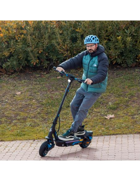 Patinete eléctrico certificado con una potencia máxima de 800W 48V, batería de litio de 13.000 mAh con hasta 50 km de autonomía, ruedas de 10" neumáticas Tubeless, suspensión delantera y trasera, triple frenada, intermitentes y APP compatible: smartGyro K2 Titán.